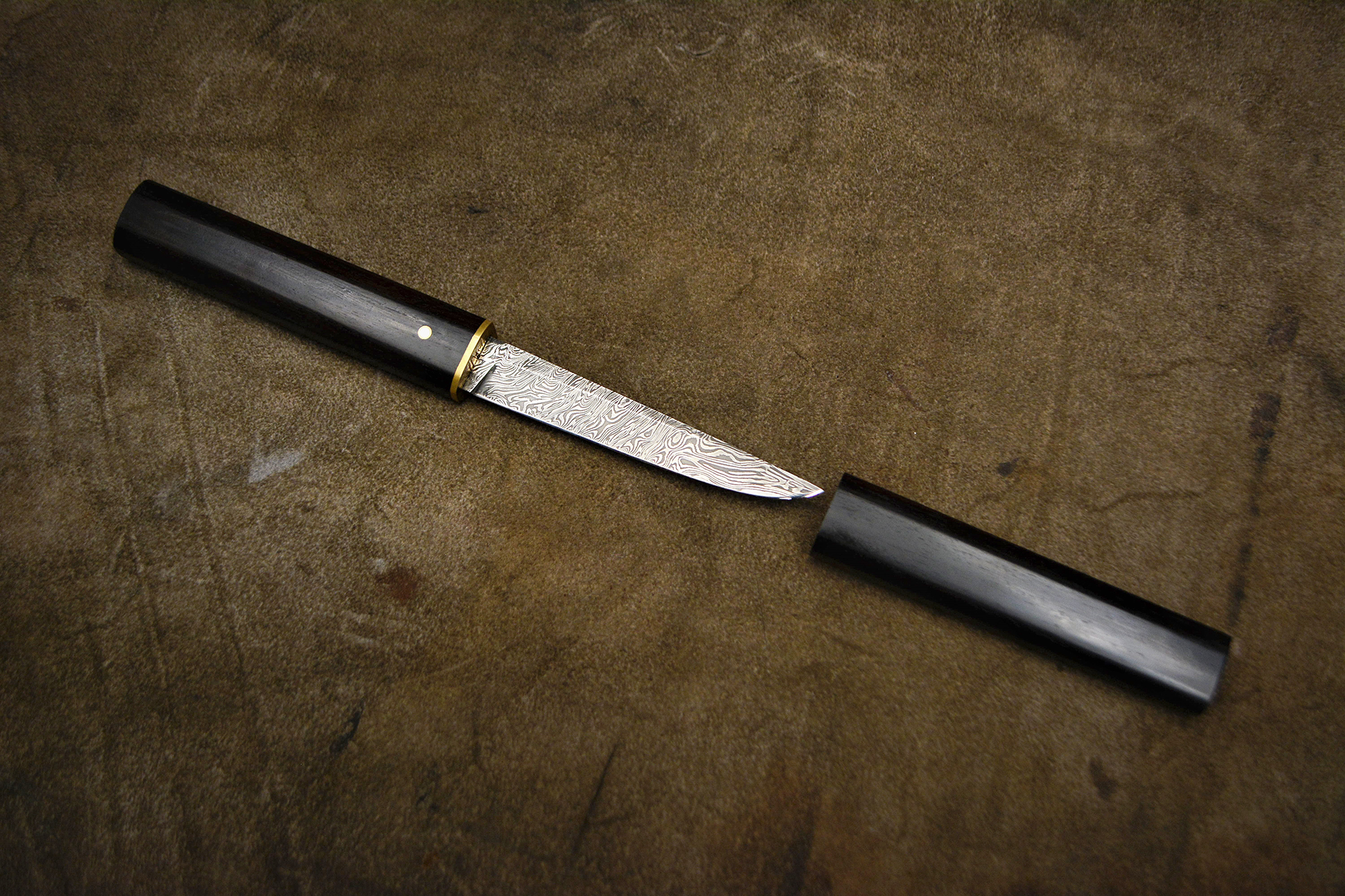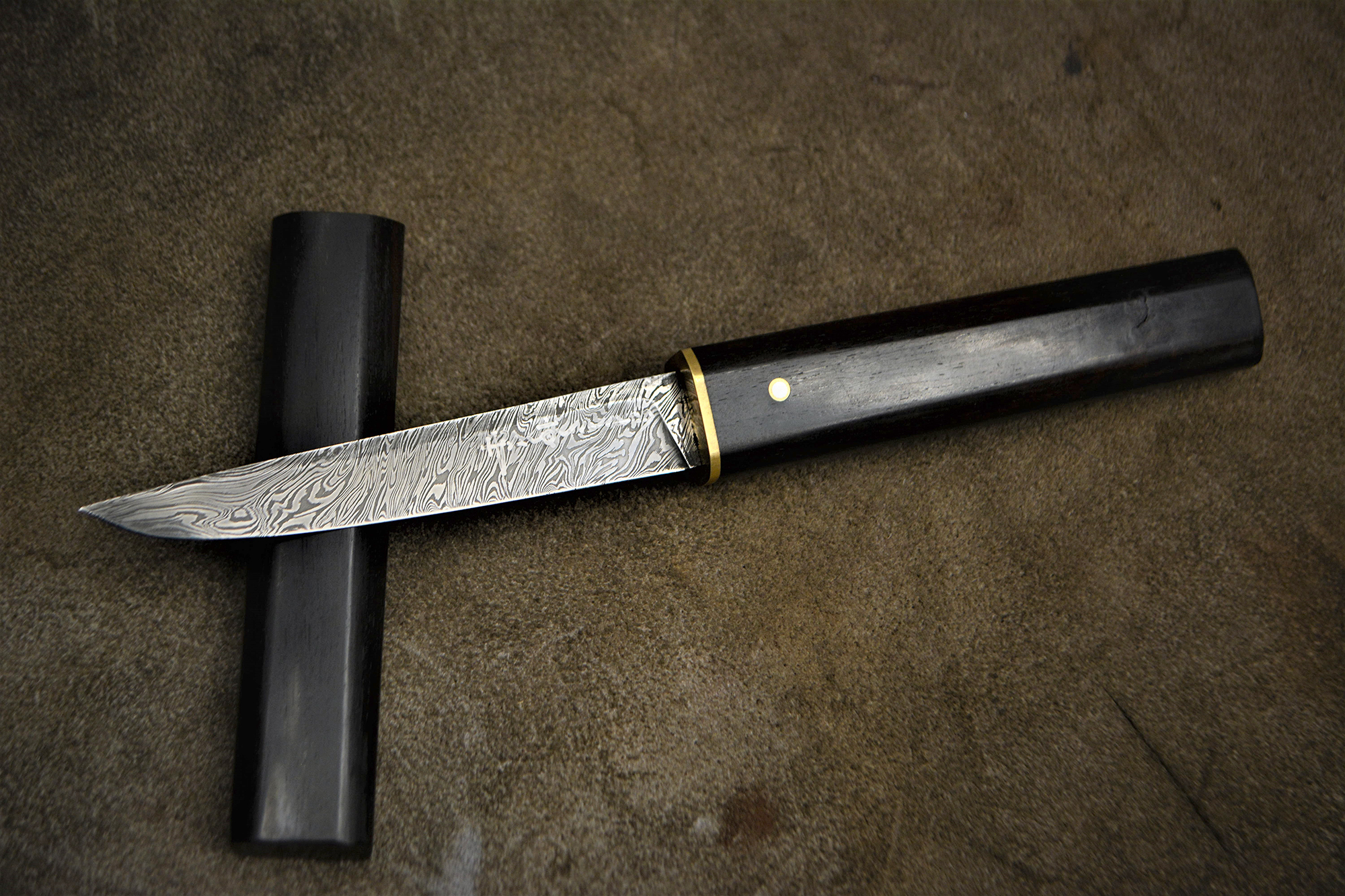 Faca especial puukko com lâmina de aço damasco, criada para comemorar o nascimento da minha filha que se chama Beatriz.
